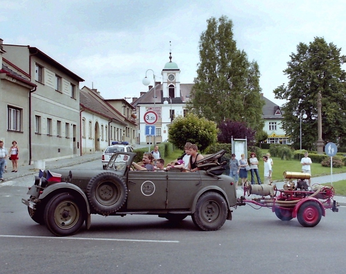 "Z pověření Okresního národního výboru v Dobrušce, odborem inspekce požární ochrany, jsem byl zplnomocněn převzít vozidlo u vojenského útvaru v Jaroměři. Při předávání byl podplukovník zděšen, že máme v úmyslu s vozidlem odjet po vlastní ose. Vozidlo stálo v garáži nehnutě již dlouhou dobu, zarovnáno, ve velmi zbědovaném stavu, s prázdnými pneumatikami, o baterii ani nemluvě. Tam jsme přijeli na motocyklu a nic jiného jsme neměli. Ale nakonec to dopadlo. Ale již při cestě domů nám v obci Rovné praskla brzdová hadice. Na vyproštění z příkopu byl sjednán traktor a pro sjezd do naší osady byl použit koňský vůz, který sloužil jako závěs pro brždění z kopce k zbrojnici. Před odjezdem mi podplukovník mimo jiné sdělil, že toto vozidlo do konce 2. světové války sloužilo u tehdejšího Gestapa v Pardubicích. Po válce k inspekcím generality Československé armády."